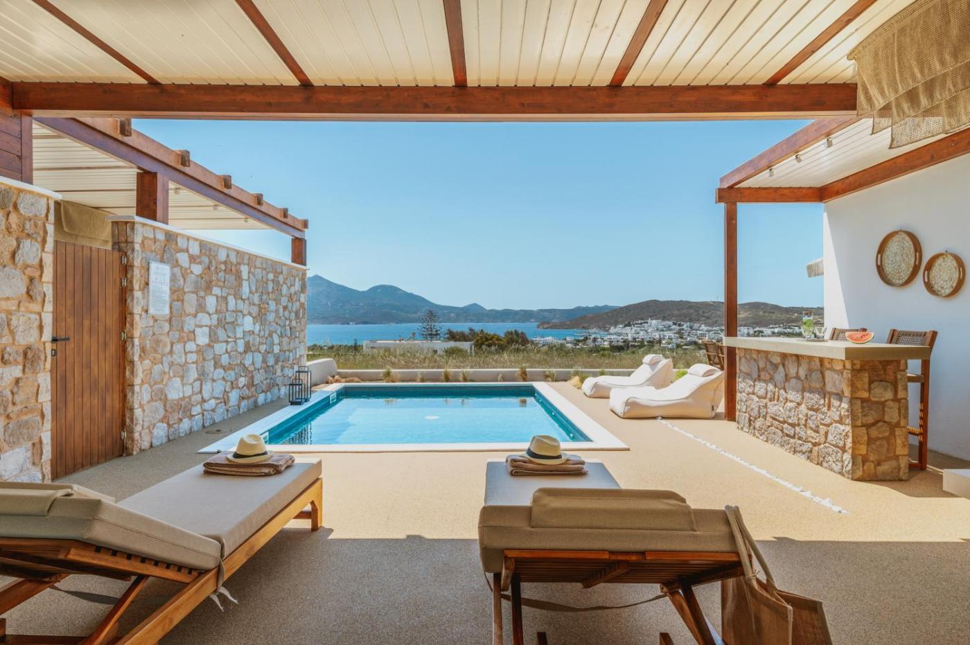 Villa with Private Pool. Guests will have a special experience as the villa features a pool with a view. Featuring a private entrance, this air-conditioned villa consists of a kitchenette, 2 bedrooms and 2 bathrooms with a shower and a hairdryer. Guests will find a stovetop, a refrigerator, a dishwasher and a microwave in the well-fitted kitchenette. The villa also offers a barbecue. The villa provides a washing machine, soundproof walls, a tea and coffee maker as well as a terrace with sea views. The unit offers 3 beds.