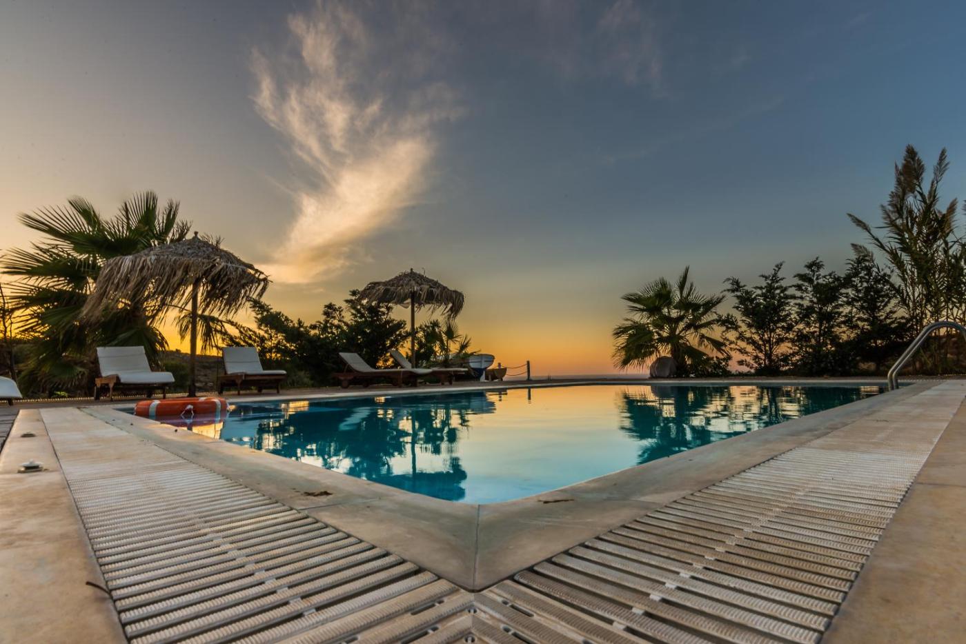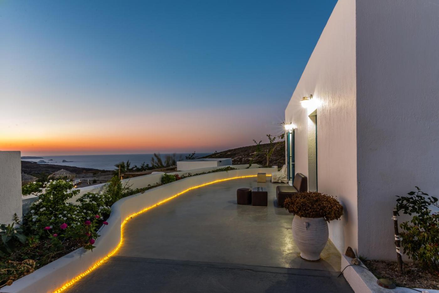 Adamas Port, with its variety of restaurants and bars, is located 1.5 km from Argo-Milos. The scenic Plaka is at 6 km, while Milos National Airport is 5 km away. Free transfer from the port can be arranged and free parking is possible on site.