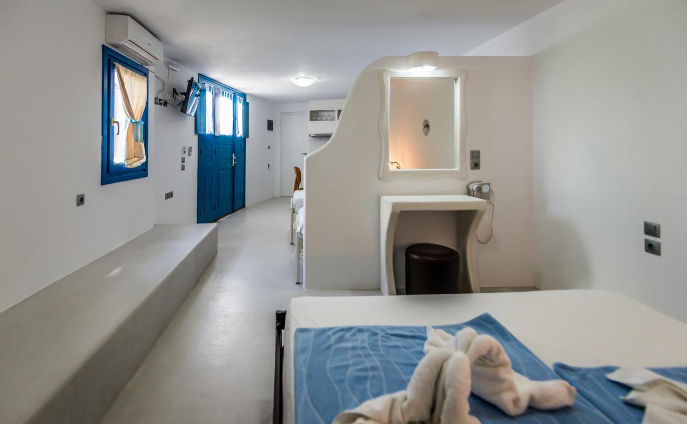 Studio with Side Sea View (2 Adults). Located at the ground floor, this air-conditioned studio opens to a private patio enjoying views over the Aegean Sea. It features: -a TV -a safe -free WiFi. ;