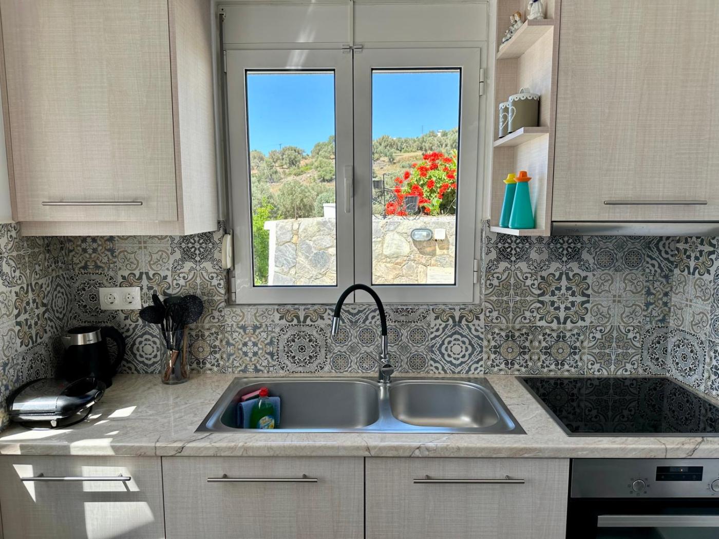 One-Bedroom House. Guests will have a special experience as the holiday home features a pool with a view. Featuring a private entrance, this air-conditioned holiday home consists of a kitchen, 1 bedroom and 1 bathroom with a shower and a hairdryer. Guests can make meals in the kitchen that is equipped with a stovetop, a refrigerator, kitchenware and an electric kettle. Boasting a terrace with sea views, this holiday home also provides a washing machine and a flat-screen TV. The unit offers 1 bed.