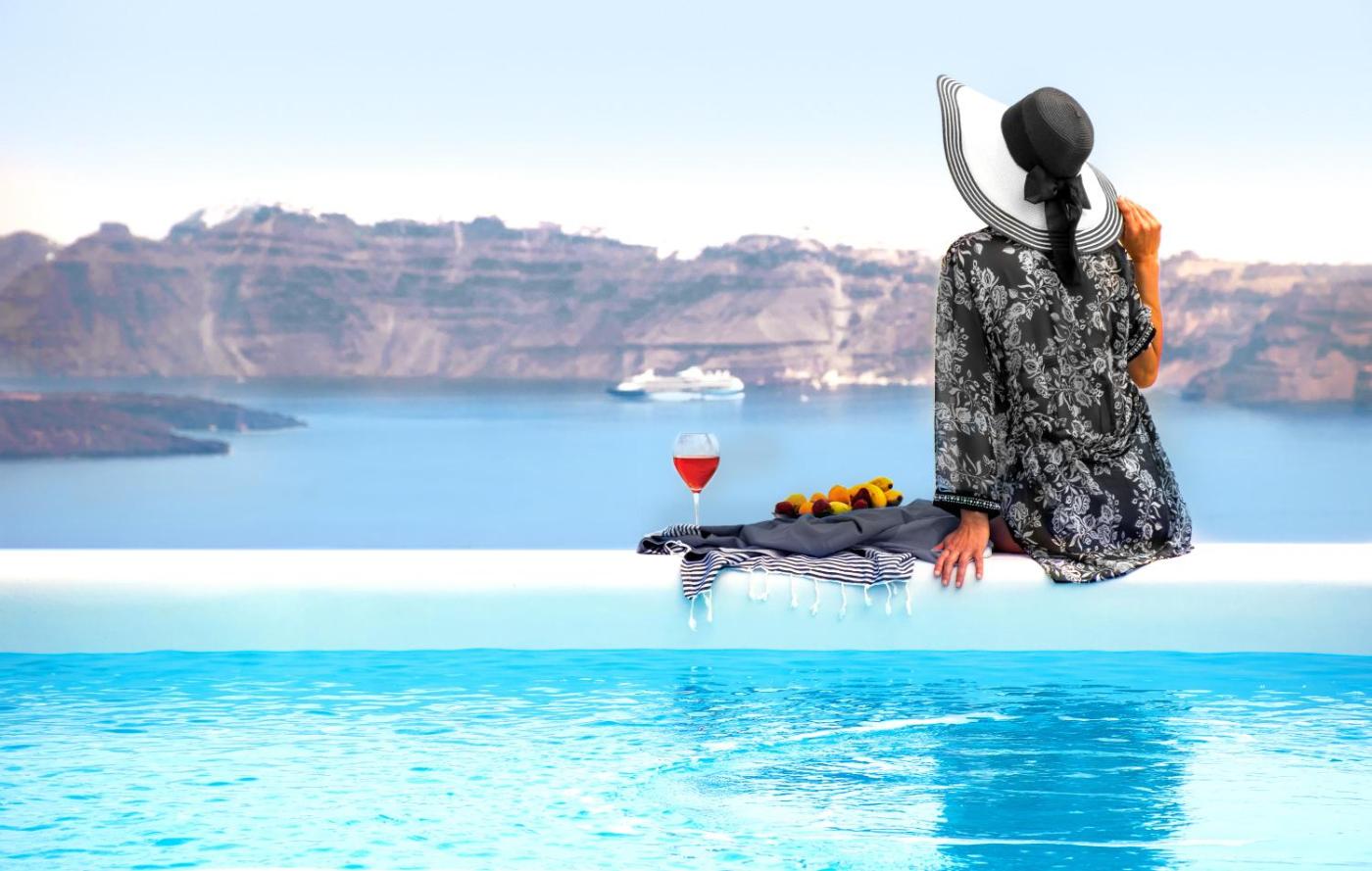 Honeymoon Suite with Private Pool. Featuring views over the Aegean Sea and the Caldera, a relaxing private patio with its own plunge pool, this air-conditioned suite offers: -a stylish sitting and dining area -2 40-inch, flat-screen TV with cable channels - a hairdryer -a mini fridge -free WiFi, -a safe box. ;