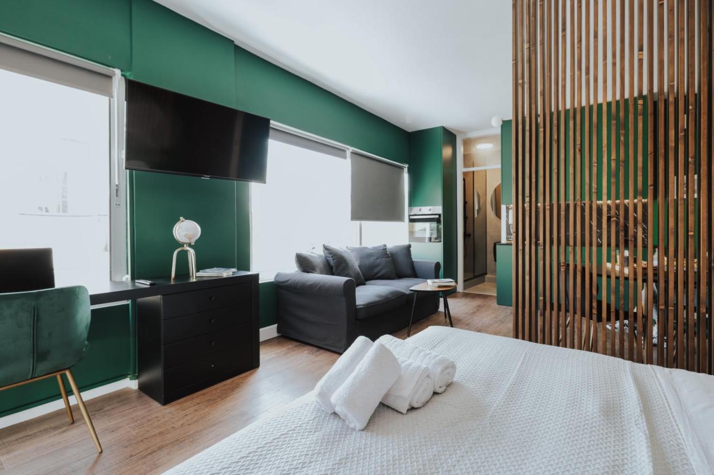 One-Bedroom Apartment. The air-conditioned apartment features 1 bedroom and 1 bathroom with a shower and a bidet. In the fully equipped kitchen, guests will find a stovetop, a refrigerator, kitchenware and an oven. Featuring a balcony with city views, this apartment also provides a washing machine and a flat-screen TV with streaming services. The unit offers 1 bed.