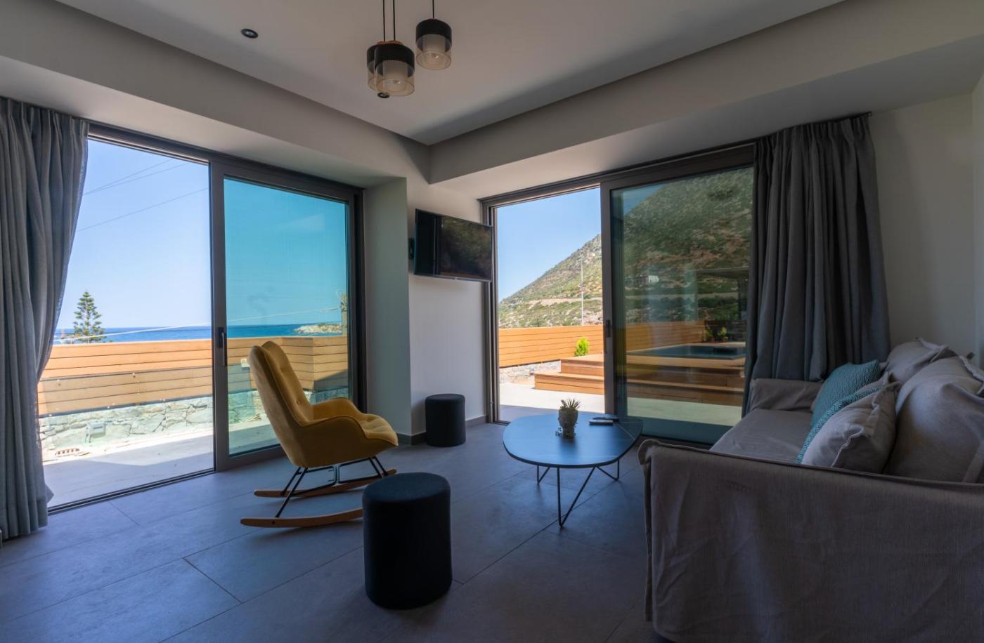 Two-Bedroom Villa. This villas standout feature is the hot tub. Boasting a private entrance, this air-conditioned villa includes 1 living room, 2 separate bedrooms and 2 bathrooms with a shower and a bidet. Guests will find a stovetop, a refrigerator, a dishwasher and kitchenware in the well-fitted kitchen. The villa also features a barbecue. Featuring a terrace with sea views, this villa also offers a washing machine and a flat-screen TV with streaming services. The unit has 4 beds.