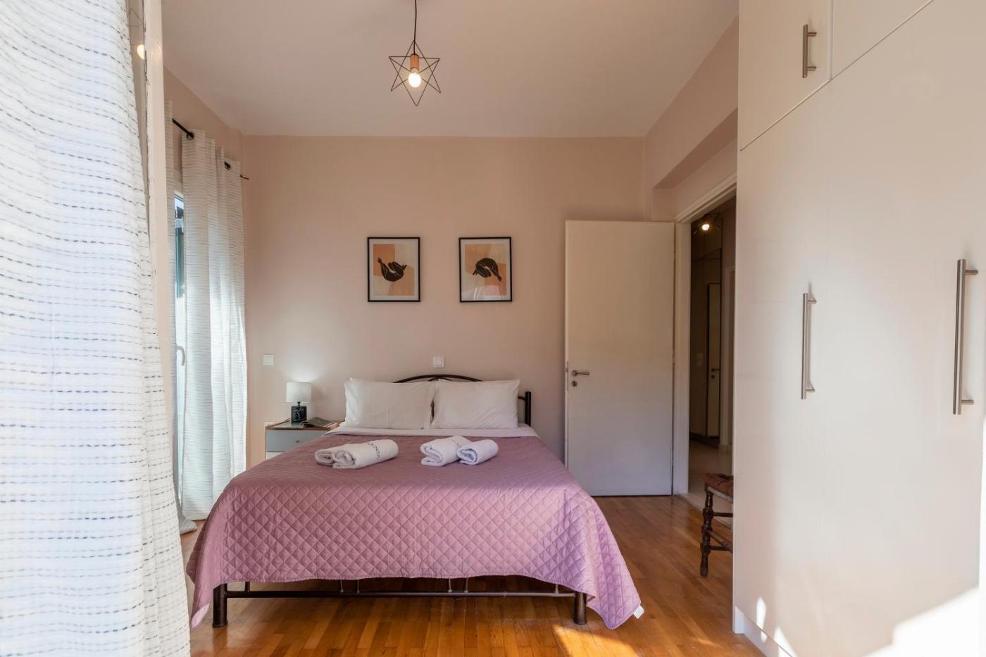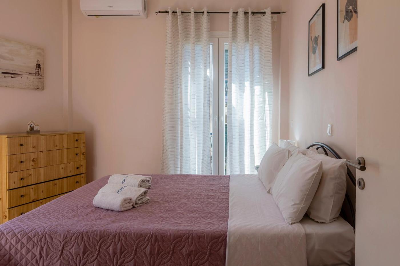 Two-Bedroom Apartment. This spacious apartment features 1 living room, 2 separate bedrooms and 1 bathroom with a shower and free toiletries. The apartments kitchen, which has a stovetop and an oven, is available for cooking and storing food. The air-conditioned apartment features a flat-screen TV, a washing machine, a tea and coffee maker, a seating area as well as city views. The unit has 3 beds.