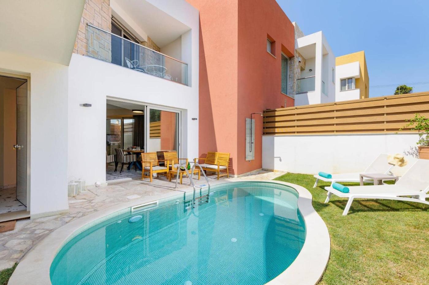 Two-Bedroom Villa. The private pool is the standout feature of this villa. The air-conditioned villa features 2 bedrooms and 2 bathrooms with a shower and a hairdryer. The villas kitchen, which has a microwave, is available for cooking and storing food. The villa offers a washing machine, a tea and coffee maker, a safe deposit box, heating and a TV with satellite channels. The unit offers 2 beds.