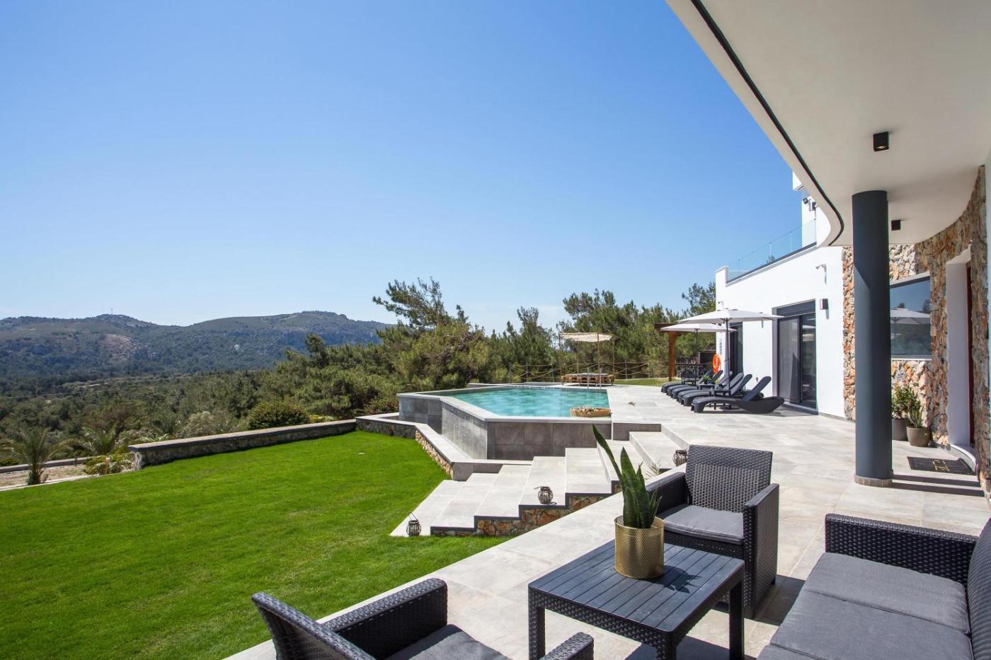 Villa. Guests will have a special experience as this villa provides a private pool. Featuring a private entrance, this air-conditioned villa is comprised of 2 living rooms, 4 separate bedrooms and 3 bathrooms with a bath and a shower. Guests will find a stovetop, a refrigerator, a dishwasher and kitchenware in the fully equipped kitchen. The villa also has a barbecue. The spacious villa offers a flat-screen TV with streaming services, a washing machine, soundproof walls, a tea and coffee maker as well as sea views. The unit offers 6 beds.