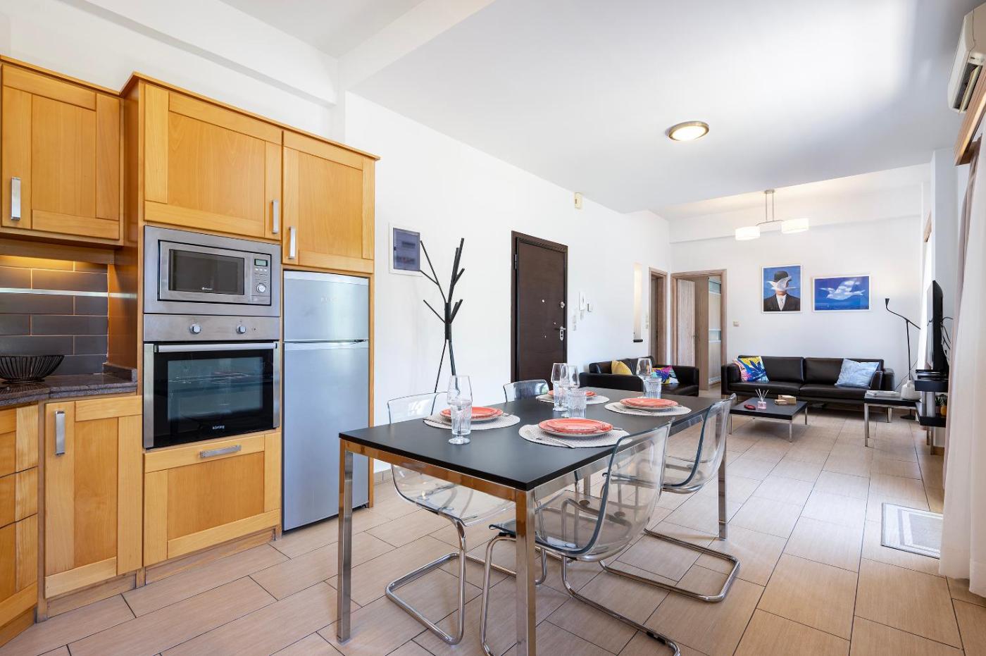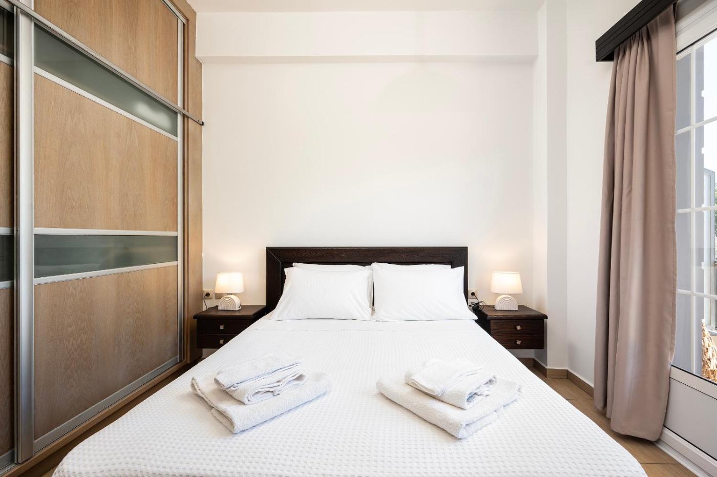 One-Bedroom Apartment. Boasting a private entrance, this air-conditioned apartment includes a kitchen, 1 bedroom and 1 bathroom with a shower and a hairdryer. The fully equipped kitchen has a stovetop, a refrigerator, kitchenware and an oven. Featuring a balcony with city views, this apartment also offers a washing machine and a flat-screen TV. The unit has 1 bed.