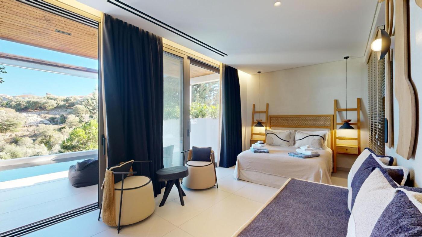 ALKYONI. Guests will have a special experience as this suite provides a pool with a view and a hot tub. Boasting a private entrance, this air-conditioned suite includes 1 living room, 1 separate bedroom and 1 bathroom with a walk-in shower and a hairdryer. Meals can be prepared in the kitchen, which is fitted with a stovetop, a refrigerator, kitchenware and an oven. Featuring a terrace with sea views, this suite also offers soundproof walls and a flat-screen TV with streaming services. The unit has 2 beds. ;