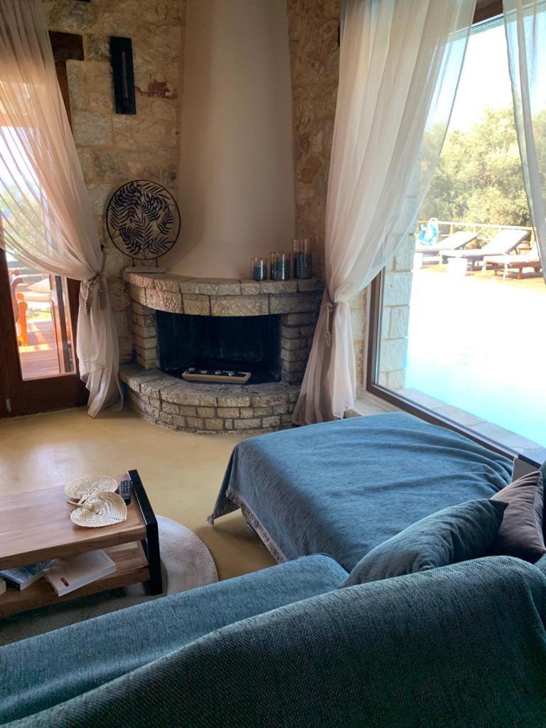 Villa with Private Pool (2-6 Adults). Set amidst a 700-m2 garden, this air-conditioned villa offers a private pool and spa bath. It opens to a private balcony with Ionian Sea, Skorpios Island and mountain views. Featuring traditional furnishings and beamed ceilings, it offers a seating area with a fireplace and a flat-screen TV. It also includes a fully equipped kitchen with a stove, fridge and microwave.