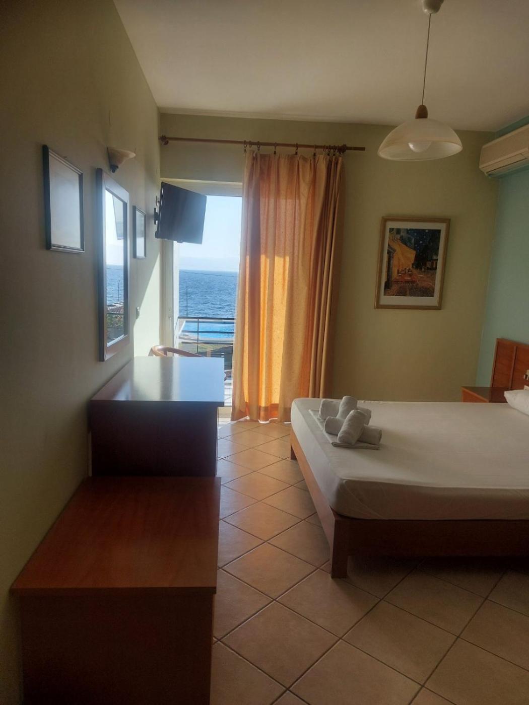 Triple Room with Terrace. The pool with a view is the standout feature of this triple room. This air-conditioned triple room is comprised of a flat-screen TV with satellite channels, a private bathroom as well as a terrace with sea views. The unit has 2 beds. ;