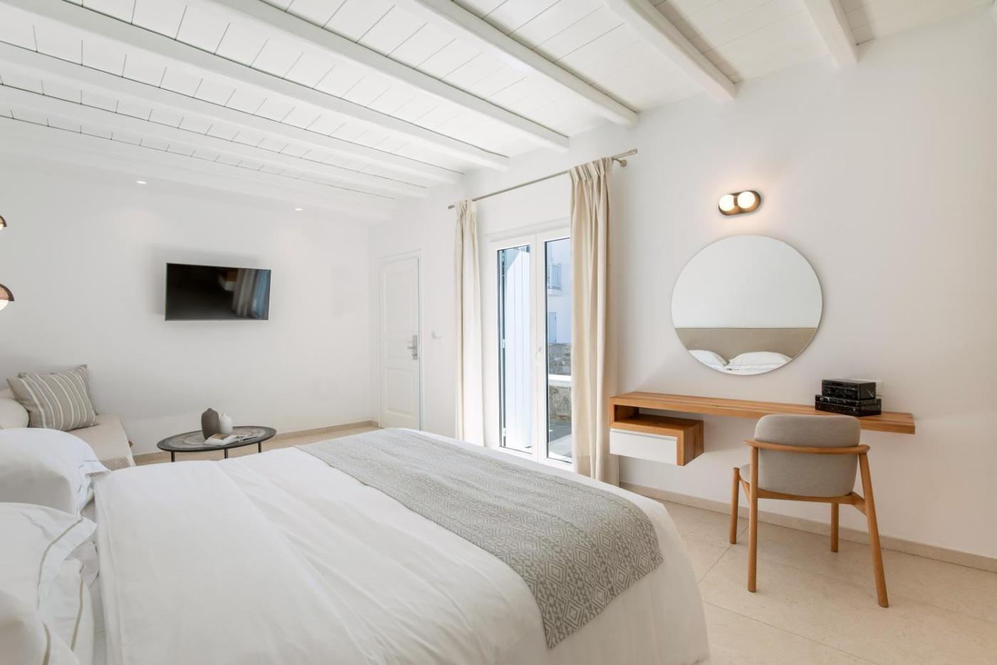 Paradise Beach offers a large variety of beach bars, shops, snack bars, restaurants and Greek tavernas. The airport is just a 10-minute drive away and the centre of Mykonos is only 15 minutes away. It can be accessed using the local bus, which stops in front of the hotel. There is also free Wi-Fi access at the hotel.