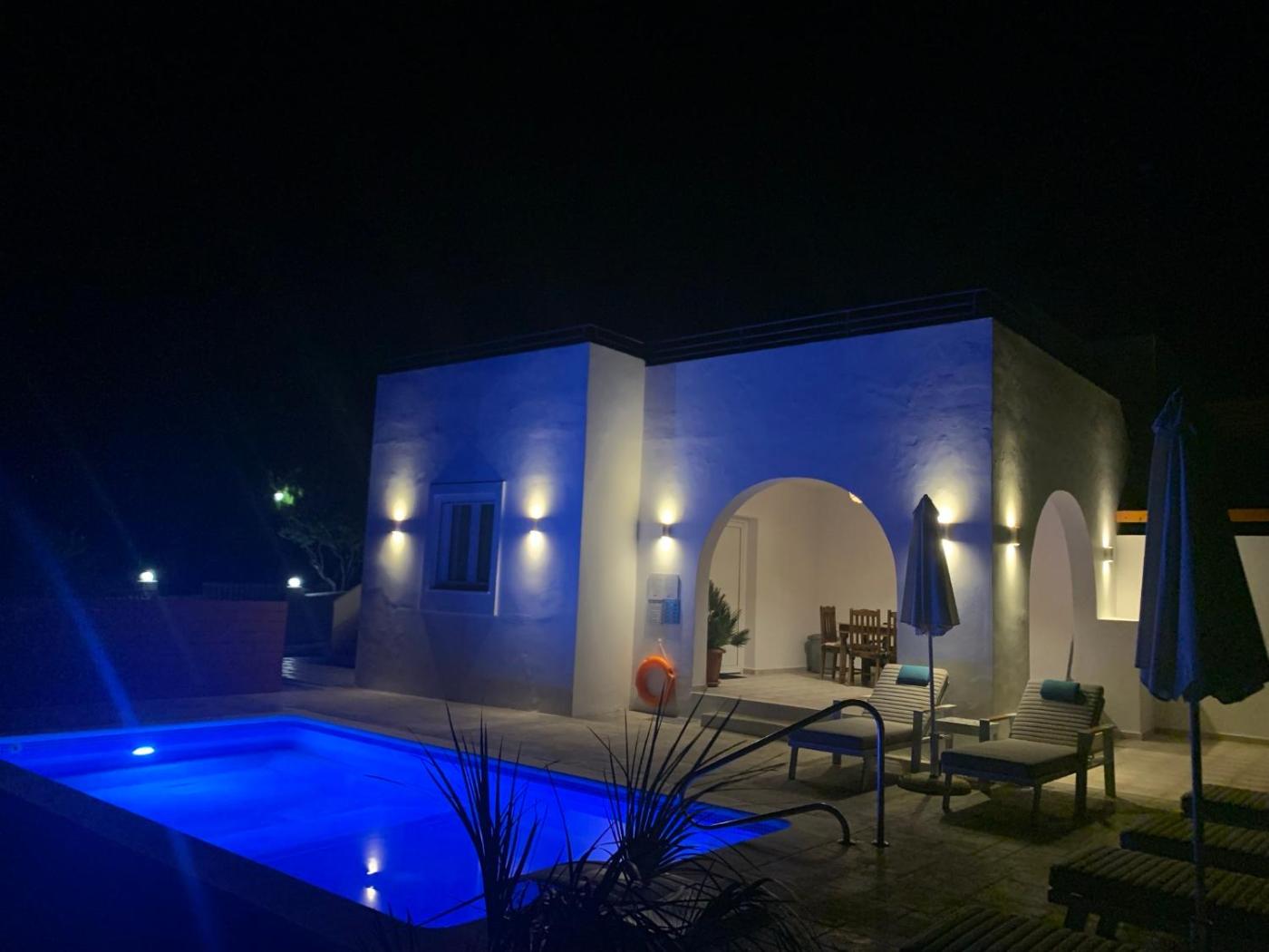 Two-Bedroom House. Guests will have a special experience as the holiday home offers a pool with a view. Featuring a private entrance, this air-conditioned holiday home consists of 2 living rooms, 2 separate bedrooms and 2 bathrooms with a walk-in shower and a bidet. Guests can make meals in the kitchen that is equipped with a stovetop, a refrigerator, a dishwasher and kitchenware. Boasting a terrace with sea views, this holiday home also provides a washing machine and a flat-screen TV with satellite channels. The unit offers 5 beds. ;