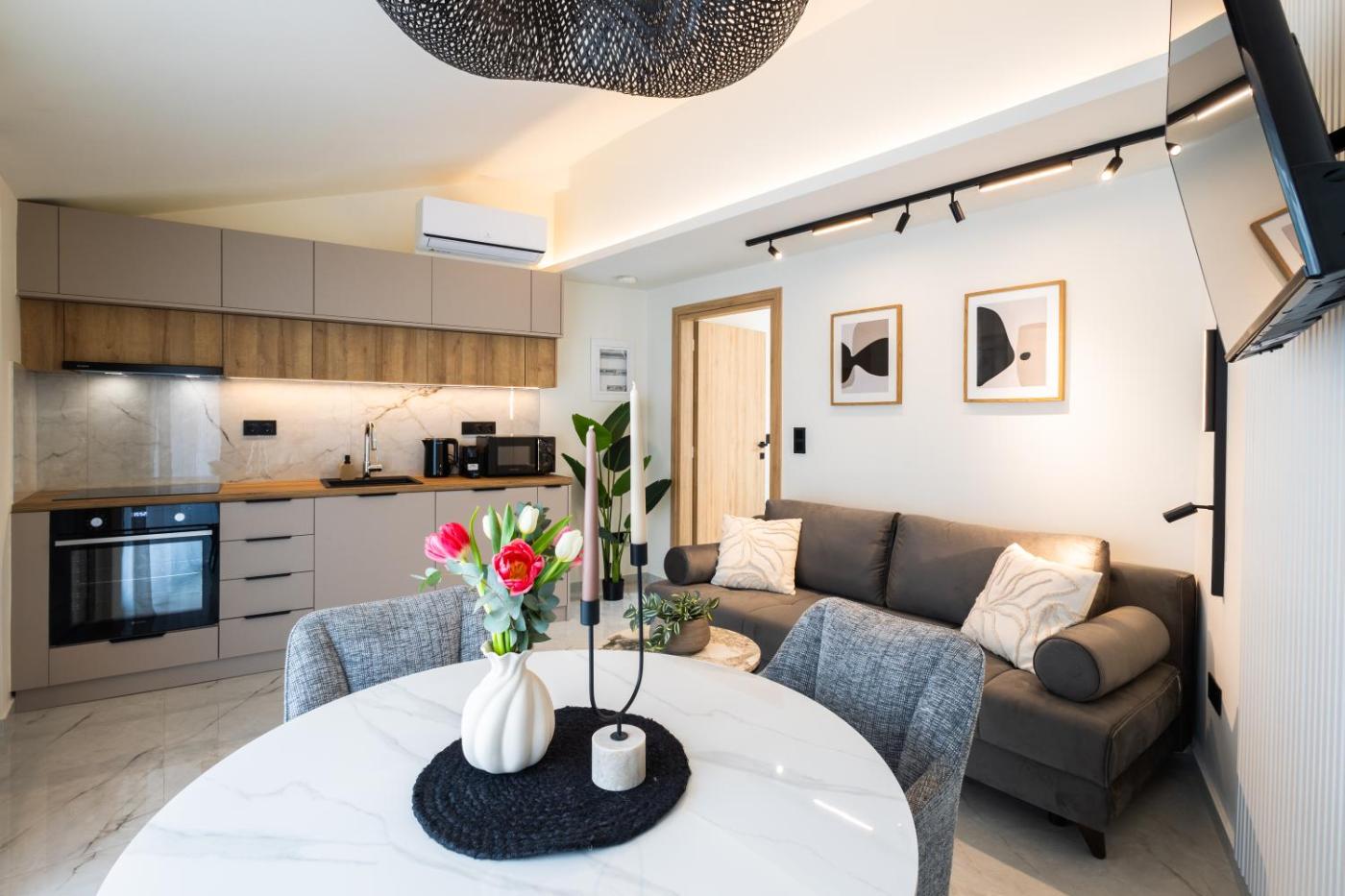 One-Bedroom Apartment. Boasting a private entrance, this air-conditioned apartment features a kitchen, 1 bedroom and 1 bathroom with a walk-in shower and a hairdryer. The well-fitted kitchen has a stovetop, a refrigerator, kitchenware and an oven. Featuring a terrace with garden views, this apartment also features soundproof walls and a flat-screen TV. The unit has 2 beds.