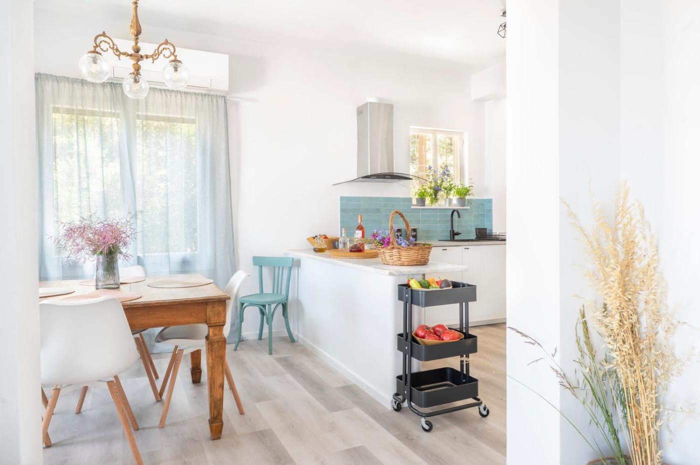 Two-Bedroom House. Featuring a private entrance, this air-conditioned holiday home comprises 1 living room, 2 separate bedrooms and 1 bathroom with a shower and a hairdryer. Meals can be prepared in the well-fitted kitchen, which comes with a stovetop, a refrigerator, a dishwasher and kitchenware. Boasting a terrace with garden views, this holiday home also provides a washing machine and a flat-screen TV. The unit offers 3 beds.