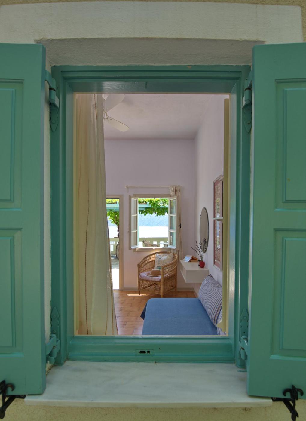 Studio with Sea View - Split Level. Fitted with an attic, this tastefully decorated and air-conditioned studio opens to a shared furnished terrace with Aegean Sea, garden and mountain views. It has a seating area and a kitchenette with cooking hobs. Kindly note that this room type accommodates two adults. Please note that the attic is accessed via a short bunk ladder. ;