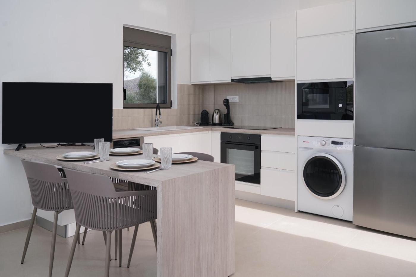 One-Bedroom Villa. Boasting a private entrance, this air-conditioned villa comes with 1 living room, 1 separate bedroom and 1 bathroom with a shower and a hairdryer. Guests can make meals in the kitchen that features a stovetop, a refrigerator, a dishwasher and kitchenware. Featuring a terrace with sea views, this villa also features a washing machine and a flat-screen TV with streaming services. The unit has 3 beds. ;